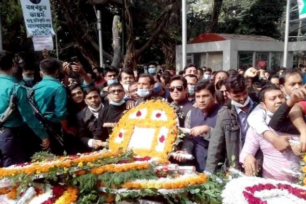মহান বিজয় দিবস উপলক্ষে বুধবার সকাল ১০টায় ধানমন্ডি-৩২এ জাতির জনক বঙ্গবন্ধু শেখ মুজিবুর রহমানের প্রতিকৃতিতে পুষ্পস্তবক অর্পণ করে শ্রদ্ধা নিবেদন করেছে বঙ্গবন্ধুর আদর্শে বিশ্বাসী বাংলাদেশের আইন শিক্ষার্থীদের সর্ববৃহত সংগঠন বঙ্গবন্ধু আইন ছাত্র পরিষদ।